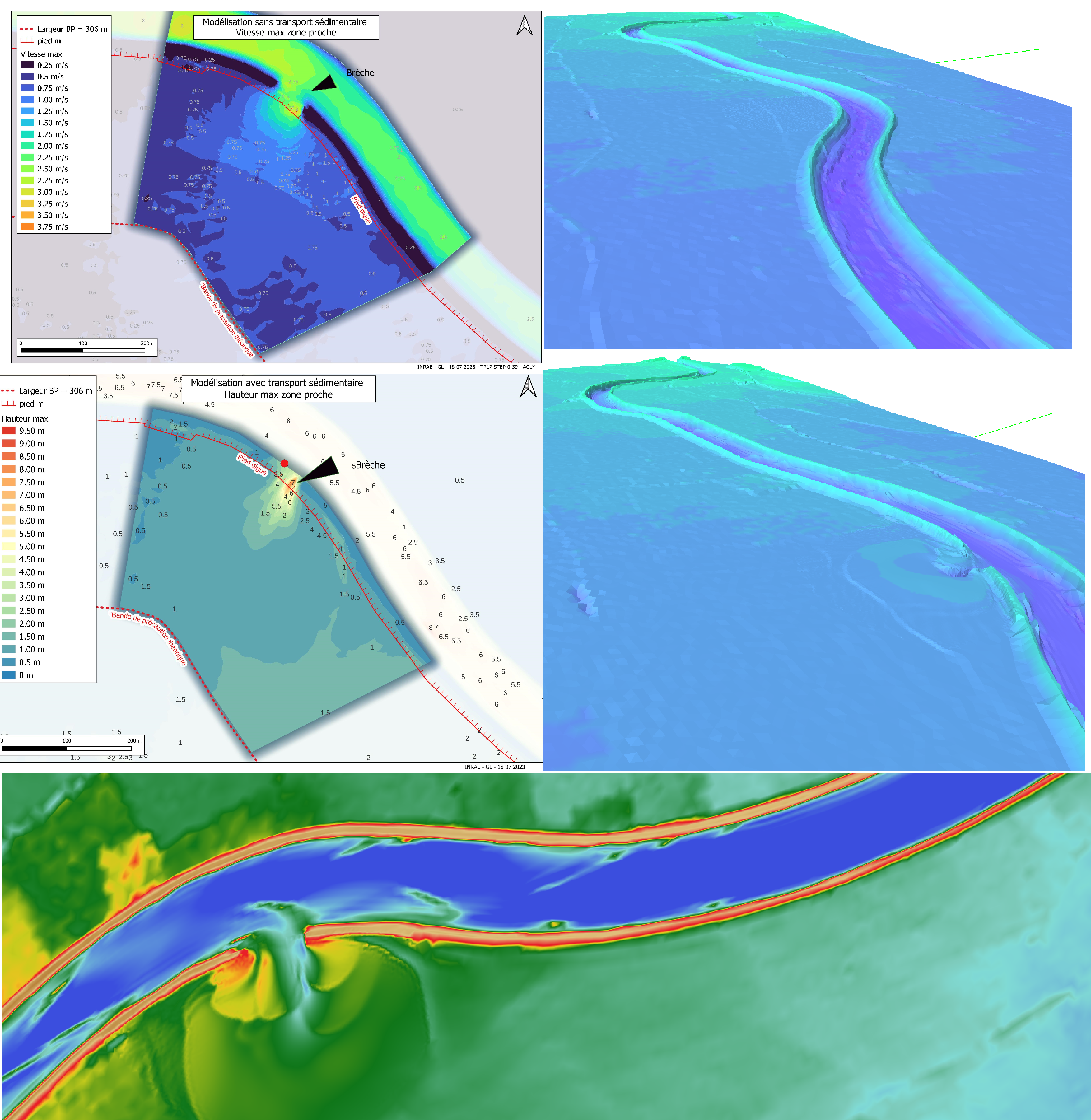 Modélisation numérique hydrodynamique (voir exemple ci-dessous)